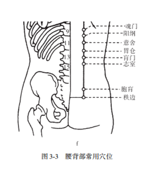 2. 定位 在背部,第2腰椎棘突旁开1-5寸( 图 3⁃3d)。
